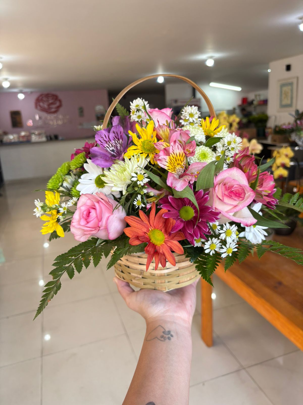 Cesta de Flores do campo colorida